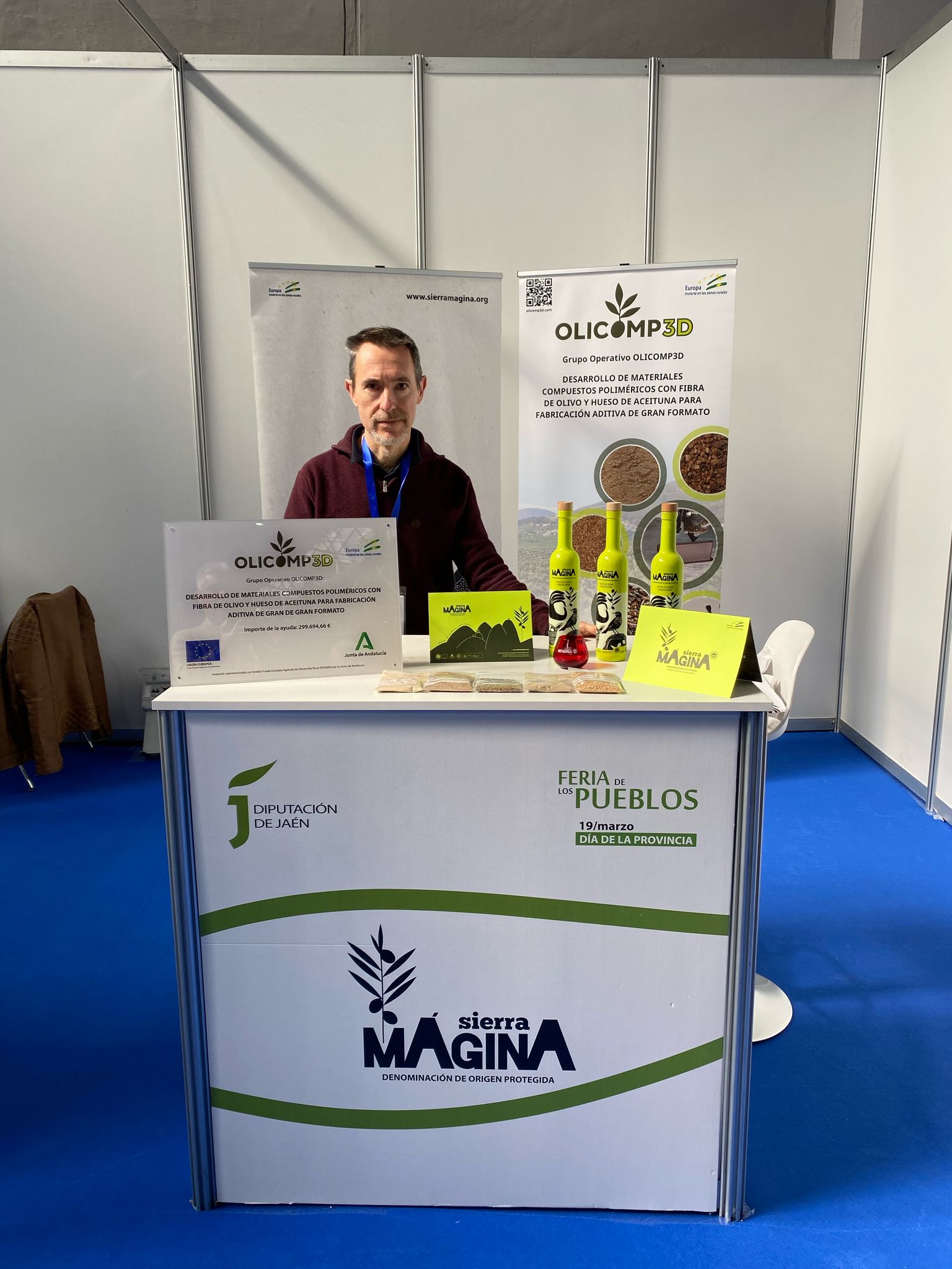 Durante el mes de Marzo, y mientras finalizan los trabajos técnicos para el desarrollo definitivo del demostrador, que va a ser embalaje de las botellas de la Denominación de Origen Sierra Mágina, se han realizado diferentes presentaciones del proyecto. Por un lado, entre los días 20 y 23 de Marzo, dentro de la Feria de los Pueblos de Jaén, el proyecto estuvo presente en el mostrador que la Denominación de Origen Sierra Mágina tuvo en esa feria, con muestras de los materiales que van a constituir la base de estos embalajes.